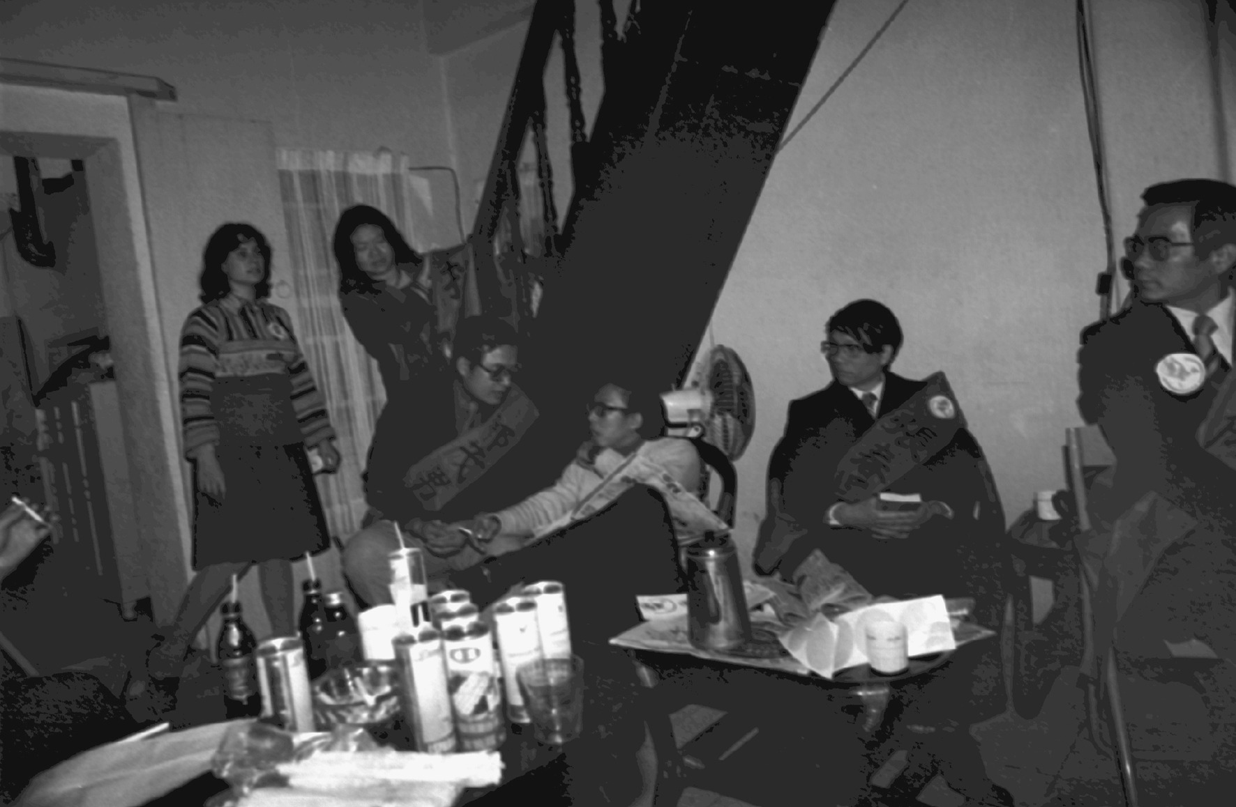 此時已十二點多,我們吃便當然後離去。陳允中趁機在客廳拍下他們的照片。當時,副司令借用余家電話直接向台北總司令報告:「他們速度太快了,我們接到情報趕來時,他們連傳單都印好分發了。但是我一定在此坐鎮,請放心!」