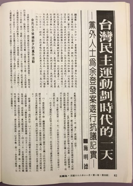 台灣民主運動劃時代的一天 —— 黨外人士為余登發案遊行抗議紀實