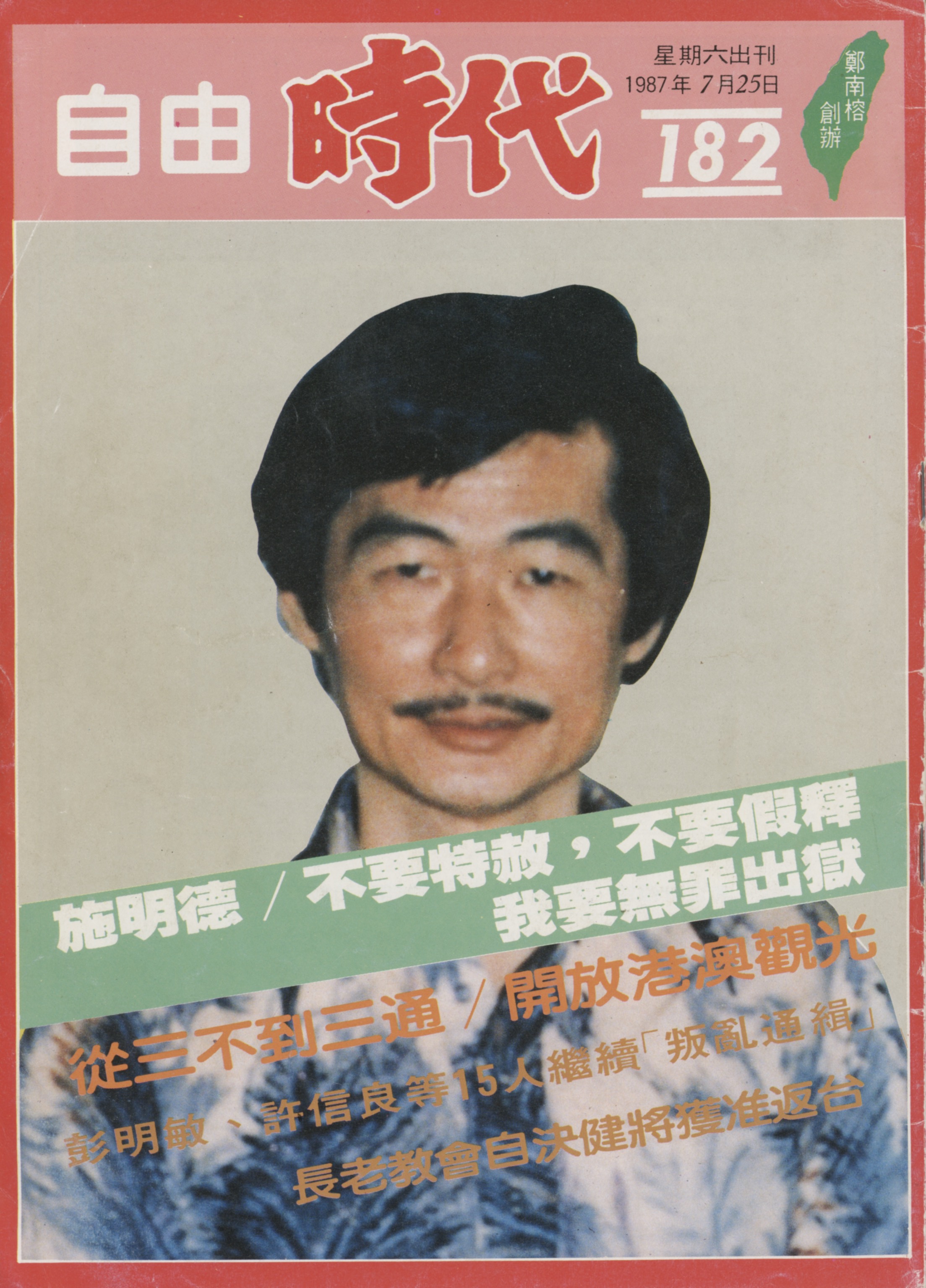 另一個自由的人,是第182期自由時代的封面人物施明德。